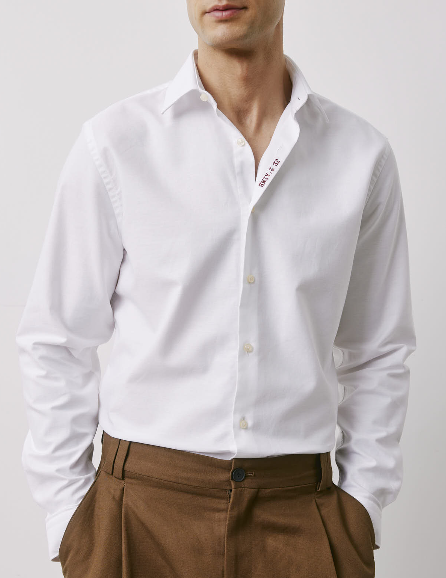 Chemise mixte "Je t'aime" blanche Oxford - Col Figaret