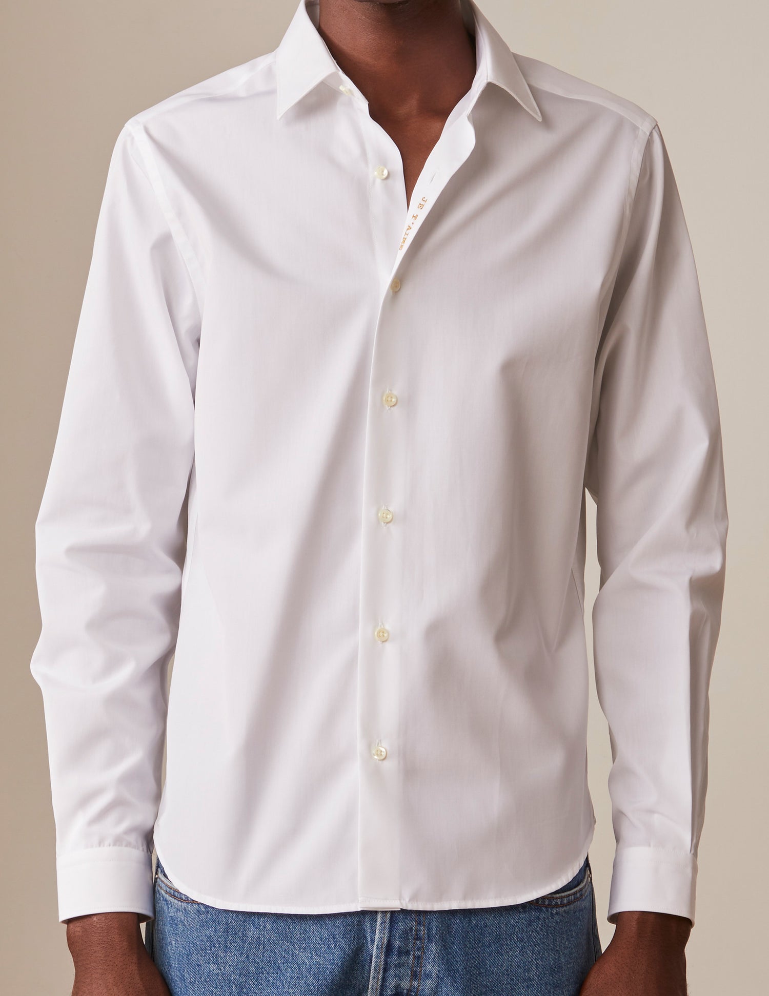 - Cette chemise est une chemise d'homme taillée sur notre coupe semi-ajustée, pensée pour s’accorder à toutes les morphologies. Un volume appuyé tout en restant confortable.