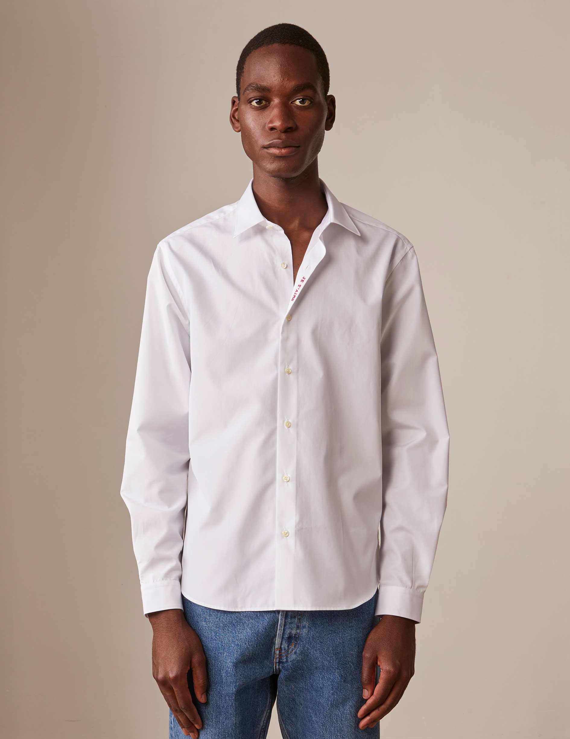 - Cette chemise est une chemise d'homme taillée sur notre coupe semi-ajustée, pensée pour s’accorder à toutes les morphologies. Un volume appuyé tout en restant confortable.