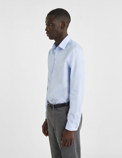 Chemise Semi-ajustée rayée bleue Popeline - Col Figaret - Poignets Mousquetaires