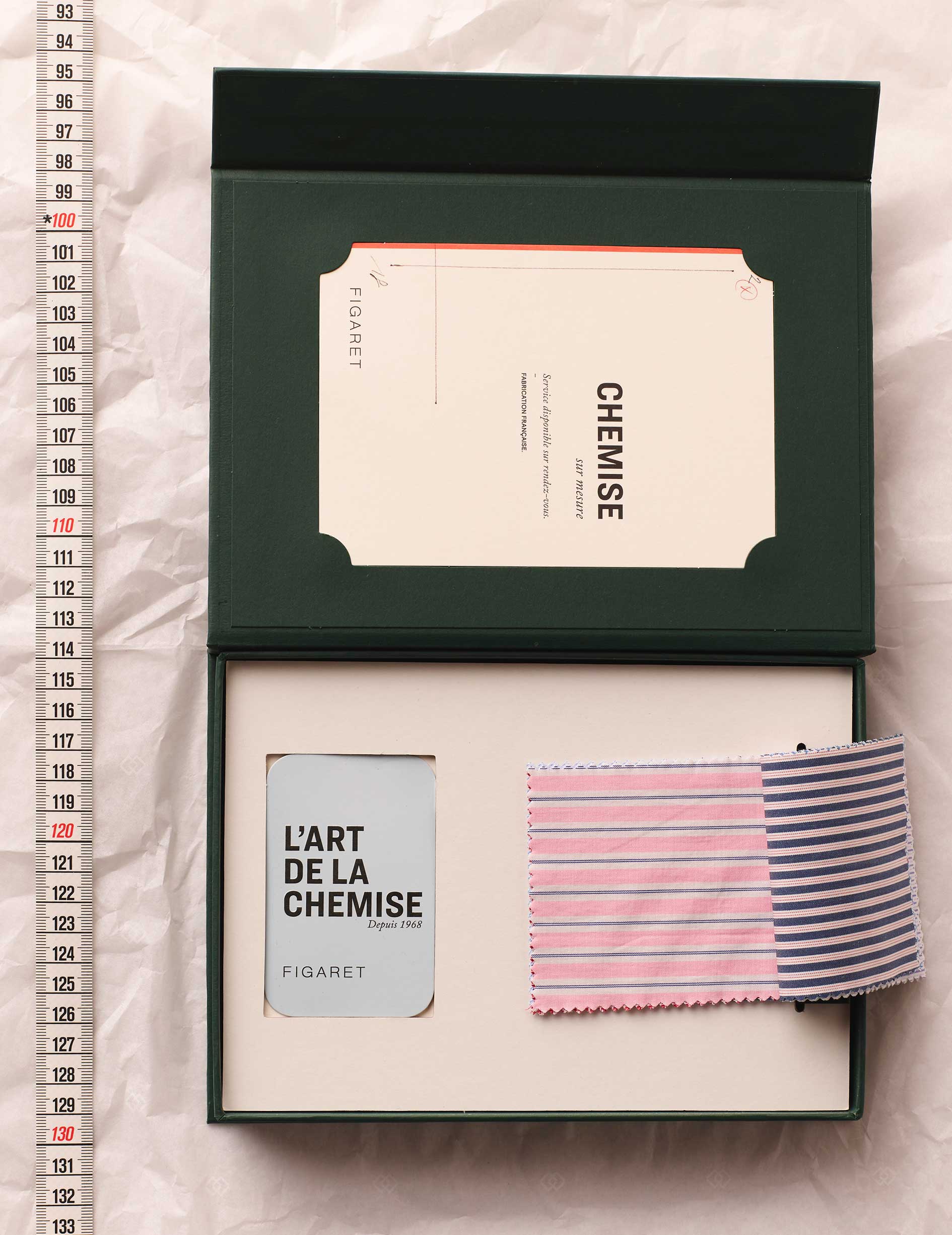 Munie de ce coffret, la personne peut se rendre en boutique ou prendre rendez-vous pour confectionner sa chemise sur mesure avec les conseils de nos experts.
