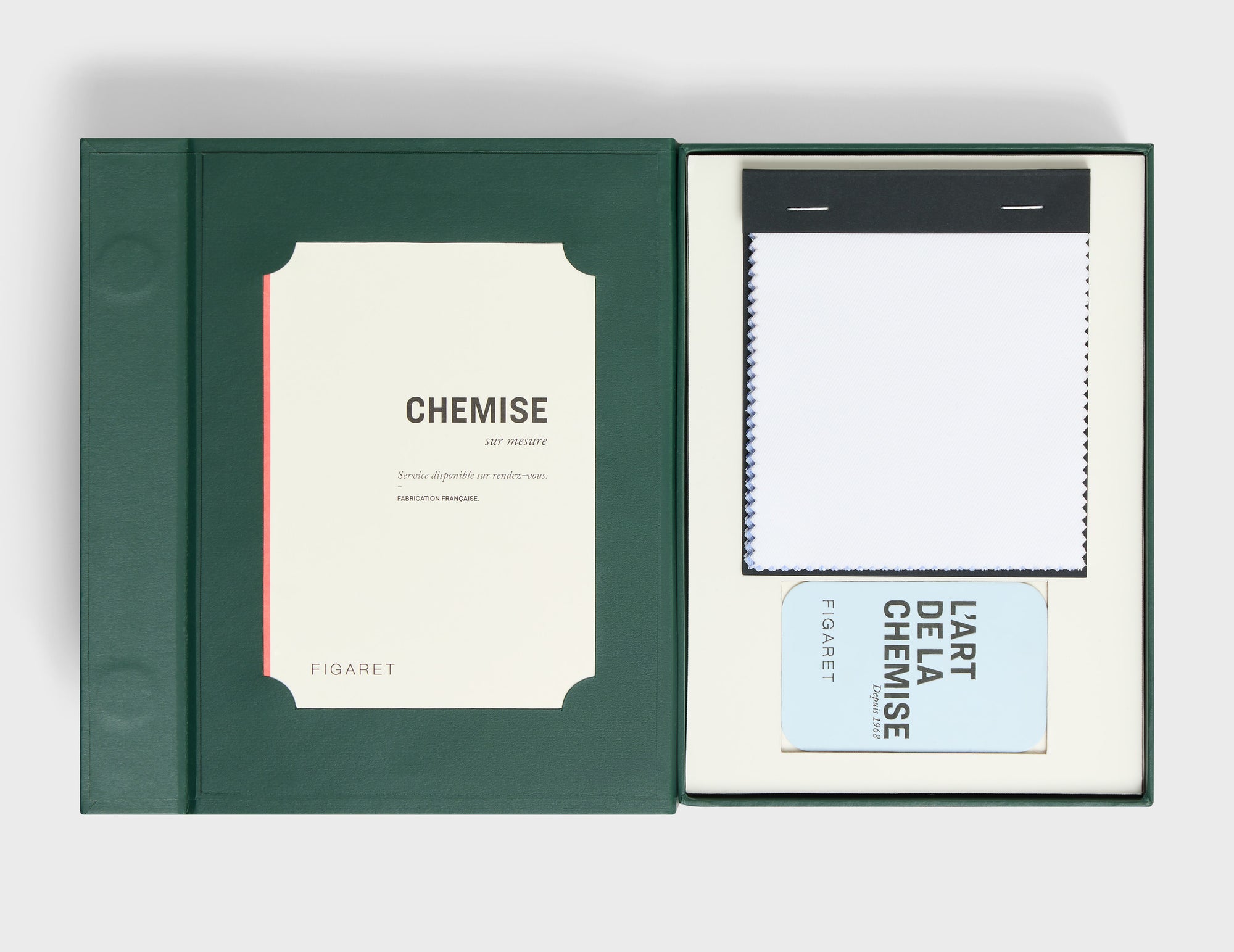 Munie de ce coffret, la personne peut se rendre en boutique ou prendre rendez-vous pour confectionner sa chemise sur mesure avec les conseils de nos experts.