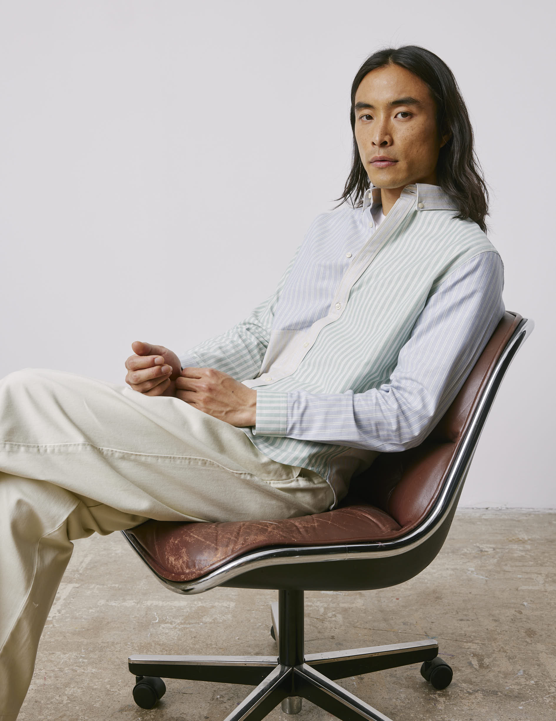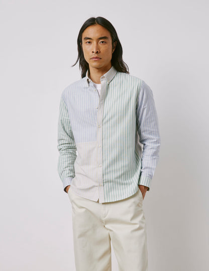 Fun shirt Marvinn rayée vert et bleu Oxford - Col Américain