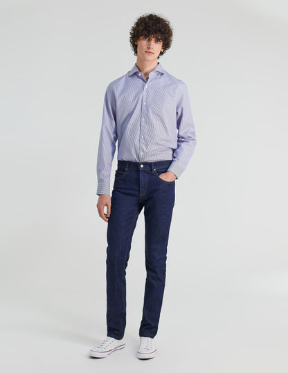 Chemise Semi-ajustée rayée bleu marine Popeline - Col Italien